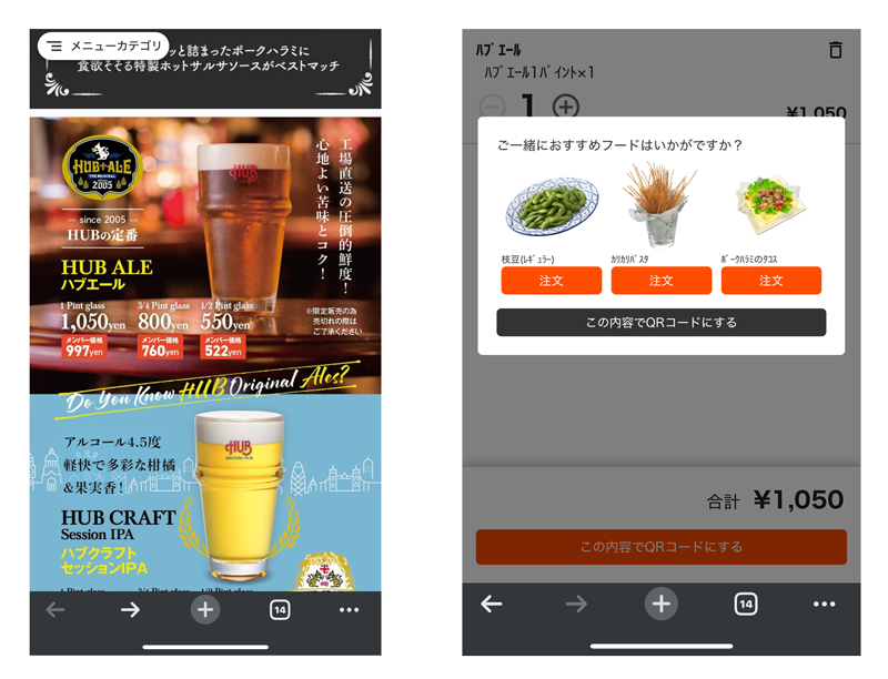 株式会社ハブ(本社:東京都千代田区、代表取締役社長:太田剛、以下「ハブ」)が運営する英国風パブ「HUB」「82」ブランド全店舗において、飲食店DX を支援する Okage 株式会社(本社:東京都中央区、代表取締役 CEO:内田善久、以下「当社」)が提供するOkage Go 店内版 QR プレオーダー機能およびアップセルレコメンド機能が新たに導入されました。